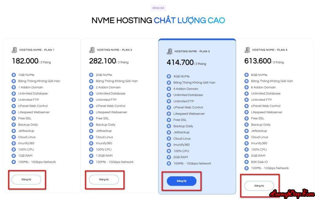 Ở đây mình lấy ví dụ mình sẽ đăng ký gói hosting này cho tên miền có sẵn của mình là luongdiep.xyz sau đó ta chọn “Use”