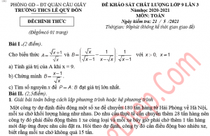 ĐỀ THI THỬ VÀO 10 LẦN 2 – MÔN TOÁN THCS LÊ QUÝ ĐÔN NĂM 2021 – 2022...