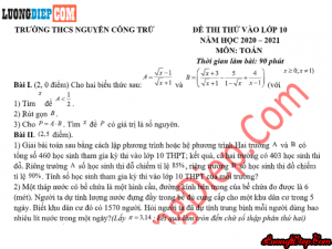 ĐỀ THI THỬ VÀO 10 MÔN TOÁN – 90 PHÚT THCS TNGUYỄN CÔNG TRỨ NGÀY THI: 4/6/2021 (Đáp án chi tiết) TẢI FILE WORD VỀ MÁY...