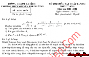 ĐỀ THI THỬ VÀO 10 MÔN TOÁN – 90 PHÚT THCS NGUYỄN TRI PHƯƠNG NGÀY THI: 3/6/2021 (Đáp án chi tiết) TẢI FILE WORD VỀ...