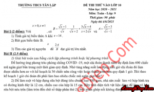 ĐỀ THI THỬ VÀO 10 MÔN TOÁN – 90 PHÚT THCS TÂN LẬP NGÀY THI: 4/6/2021 (Đáp án chi tiết) TẢI FILE WORD VỀ...