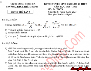 ĐỀ THI THỬ VÀO 10 MÔN TOÁN – 90 PHÚT THCS THÁI THỊNH NGÀY THI: 4/6/2021 (Đáp án chi tiết) TẢI FILE WORD VỀ MÁY...