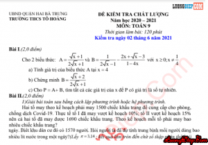 ĐỀ THI THỬ VÀO 10 MÔN TOÁN – 90 PHÚT THCS TÔ HOÀNG NGÀY THI: 2/6/2021 (Đáp án chi tiết) TẢI FILE WORD VỀ MÁY...