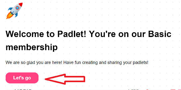– Như vậy ta đã đăng ký thành công và bấm vào “Let’s go” để bắt đầu đến với Padlet