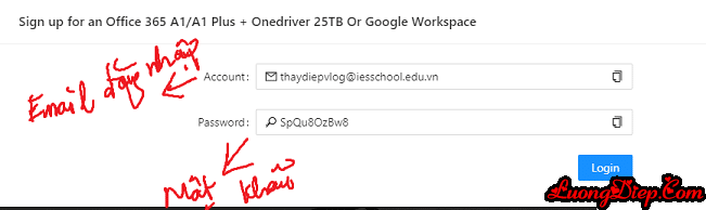 Sau khi đăng ký xong chúng ta sẽ nhận được TK Ofice 365 A1 ngay lập tức.