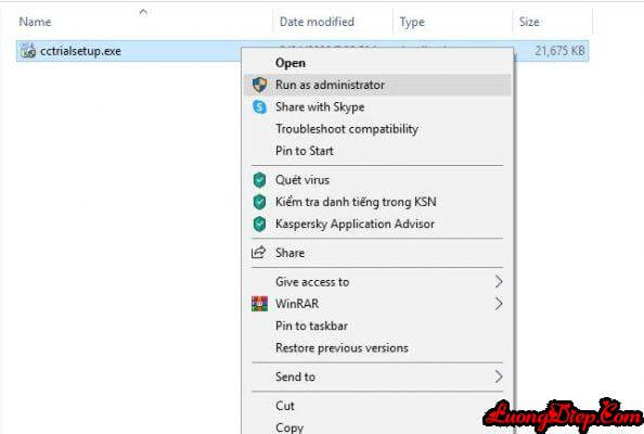 - Phải chuột vào file cài đặt vừa tải về chọn “Run as administrator”