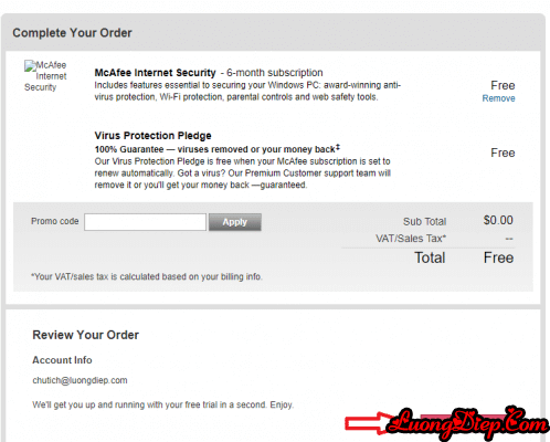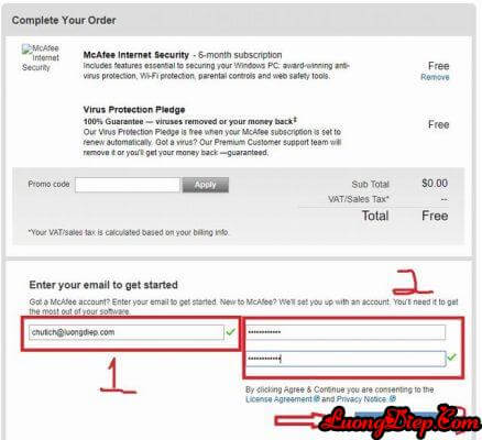 Để có giấy phép McAfee Internet Security miễn phí 6 tháng, bạn hãy làm theo các bước đơn giản dưới đây: