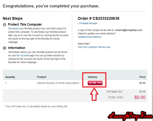 4. Tiếp theo bạn click vào Get My Trial để dùng McAfee Internet Security 2020 miễn phí 6 tháng