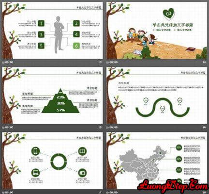 Trang nội dung mẫu PowerPoint được tạo từ 24 biểu đồ trượt động màu xanh lá cây. Ngoài ra, nhiều hình ảnh học sinh, hình ảnh giáo viên, hình ảnh lớp học và bố trí khác được sử dụng.